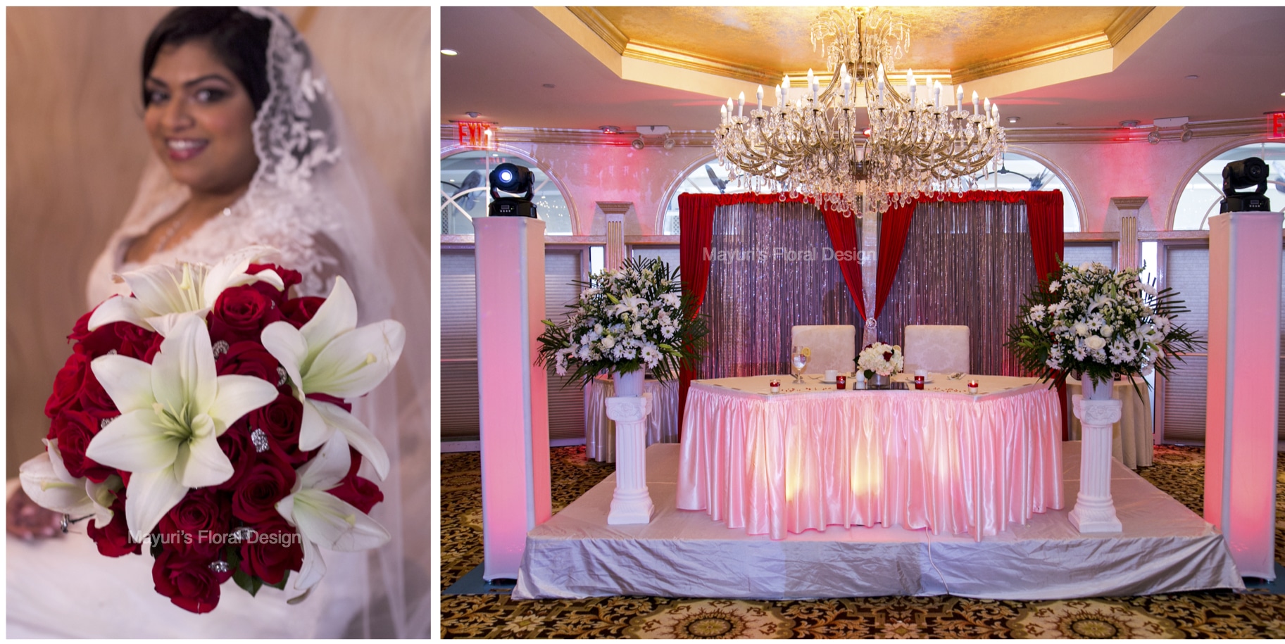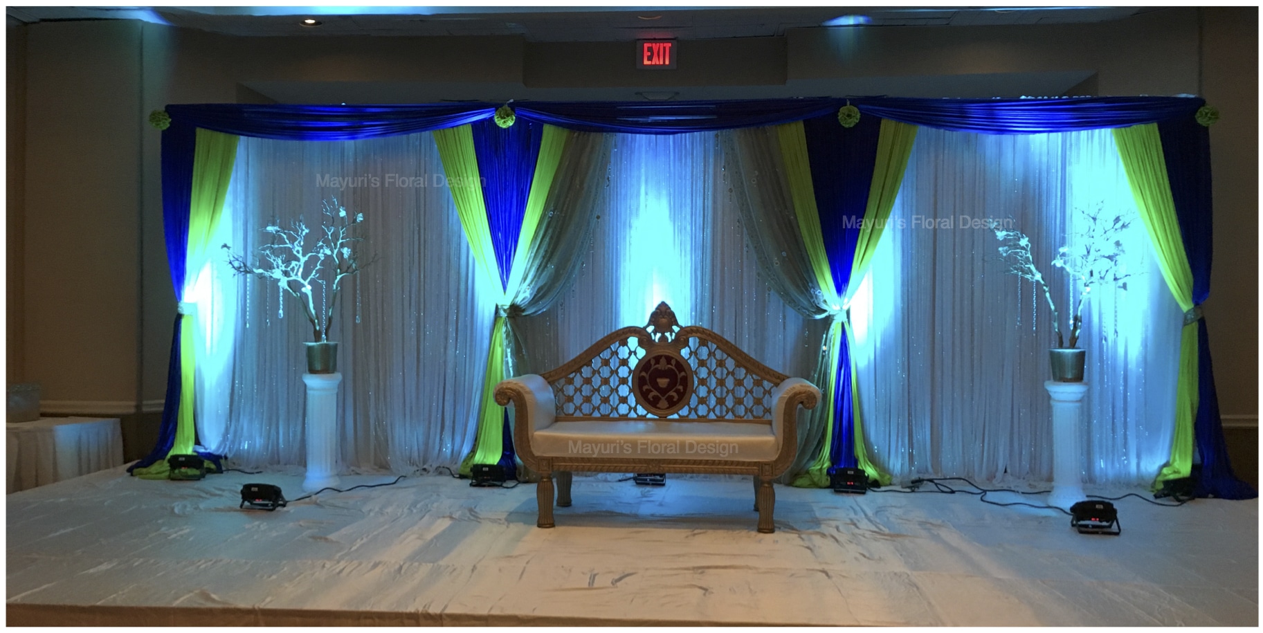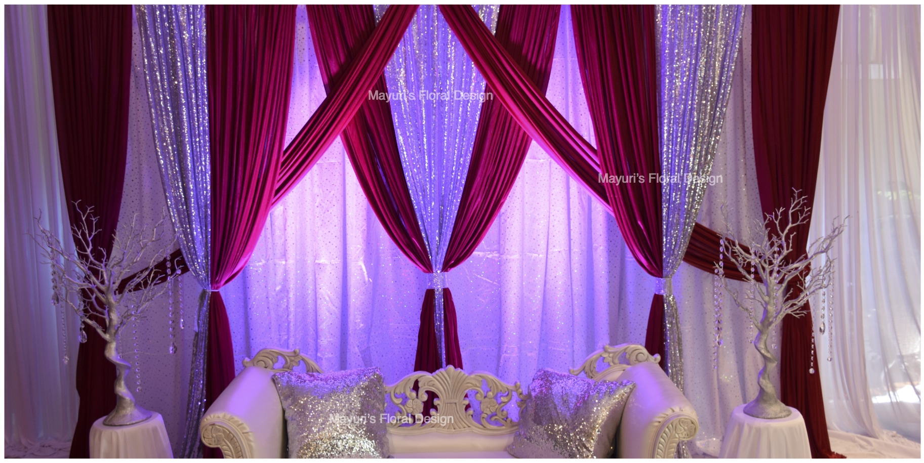 Enhance the beauty of any space with decadent draping to create an eye catching focal point for your ceremony or reception. Our draping designs transform any venue into a breathtaking setting with an enchanting backdrop that can feature lovely crystal accents and dramatic lighting effects.